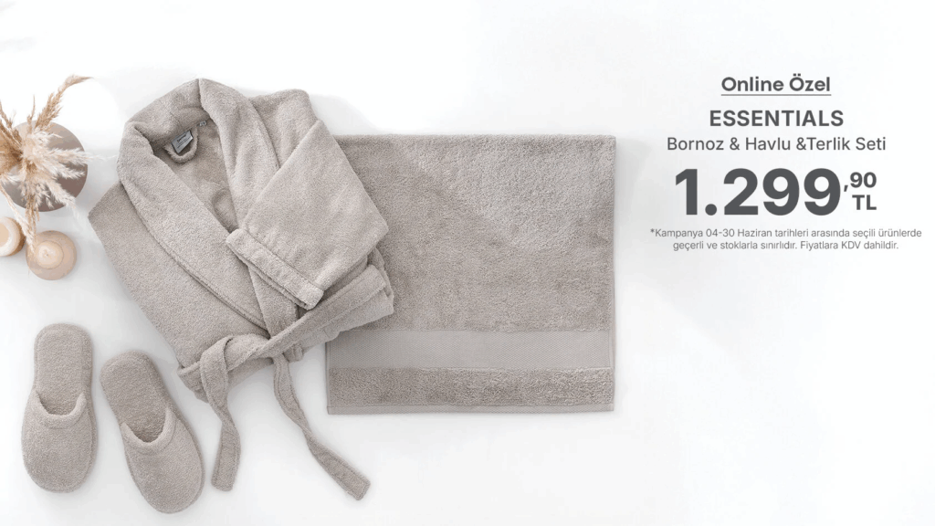 %100 Pamuk Bornoz, Havlu, Terlik Seti 1.299,90 TL (Online Özel)