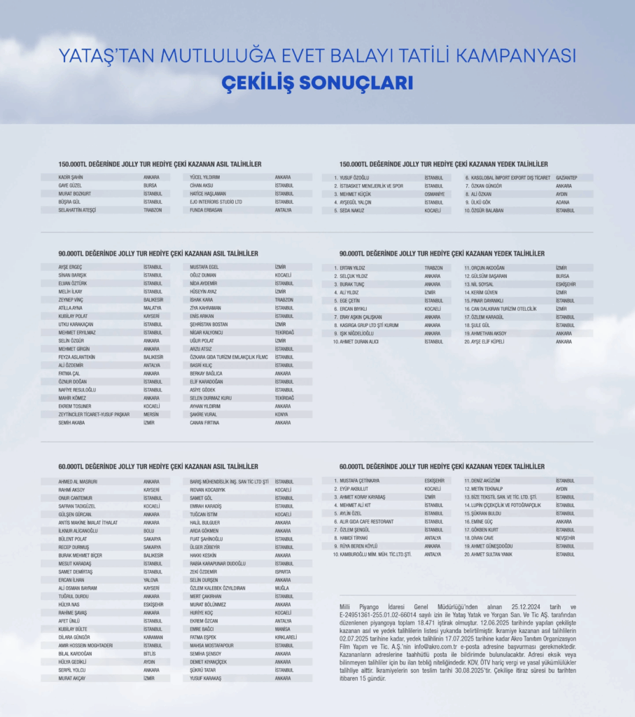 02 Ocak 2024 – 31 Mayıs 2025 tarihleri arasında anlaşmalı Yataş Bedding mağazalarında ve yatasbedding.com.tr sitesinde “Bonus’a özel Peşin Fiyatına 9 Taksit” kampanyası yapılacaktır.