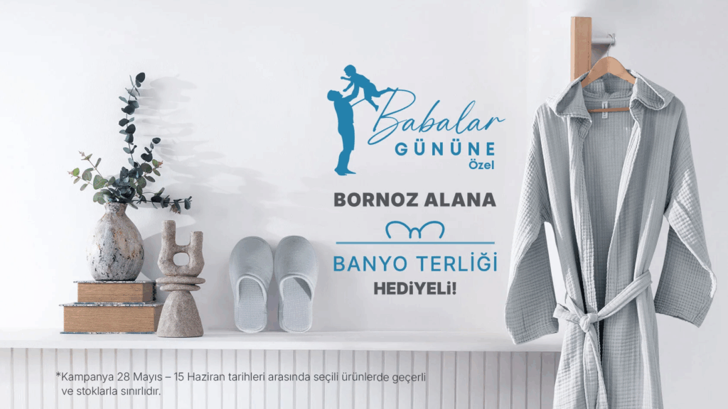 1- Babalar Gününe Özel Bornoz Alana Banyo Terliği Hediye