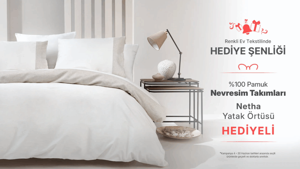 Yataş Bedding Renkli Ev Tekstili alışverişlerinizde 4 – 30 Haziran arası %100 pamuk nevresim takımı alana Netha yatak örtüsü hediye.